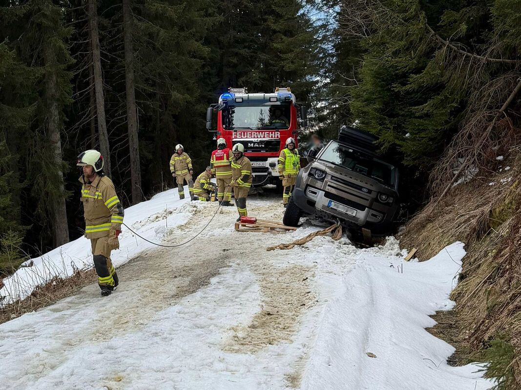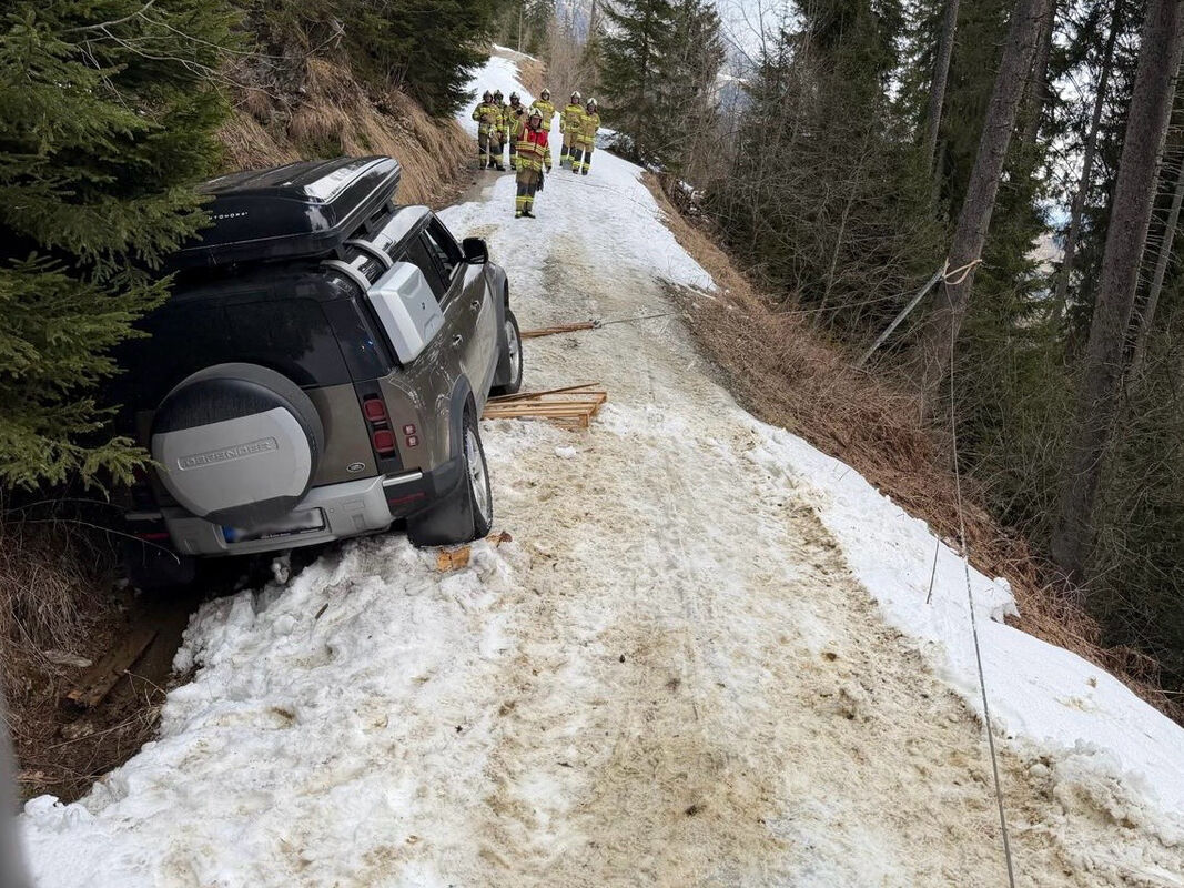 Ein PKW, welcher in Richtung Aualm vom Weg abkam, musste mit der Einbauseilwinde des Rüstlöschfahrzeugs geborgen werden.