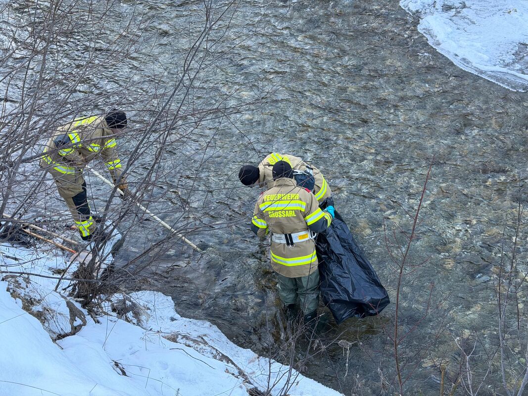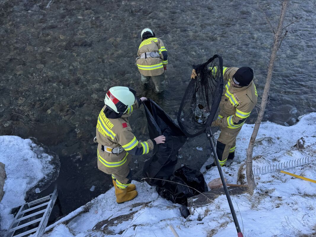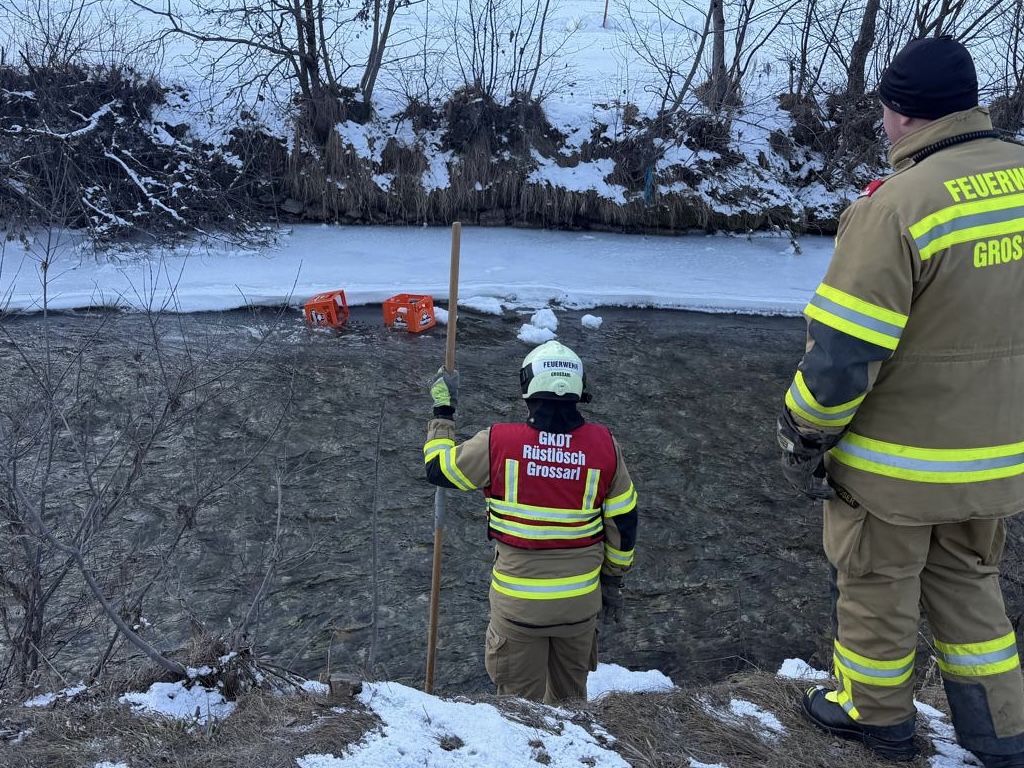 Durch ein Missgeschick landeten 15 bis 20 Getränkekisten mit ca. 300 Flaschen Leergut in der Großarler Ache und wurden teilweise bis zu 2 Kilometer flussabwärts getrieben. Bei eisigen Temperaturen wurden die Flaschen und Kisten eingesammelt.